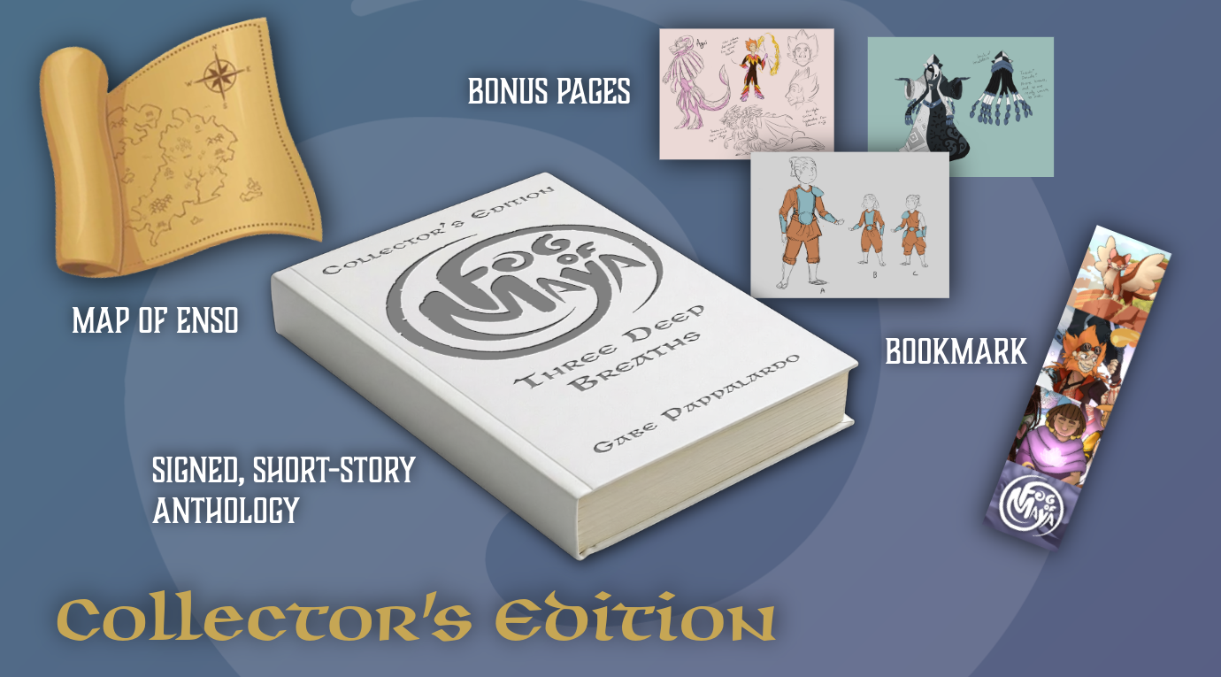 This campaign will fund the creation of a limited number of signed, printed Collector’s Editions of The Fog of Maya: Three Deep Breaths, including bonus pages, the Enso World Map, and an exclusive bookmark! Preview the campaign by clicking below and hit “Notify me on Launch” so you don’t miss out on Early Bird discounts!
